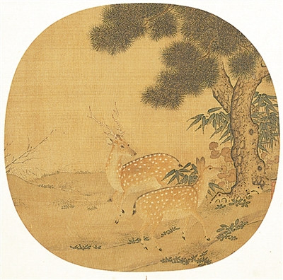中国绘画史中,鹿亦是历代画家钟爱的创作主题。从南宋马远《松荫观鹿图》到清代沈铨《柏鹿图》,一代代画家通过多元视角,将鹿的形态之美塑造成经典的艺术形象。宋代牟仲甫的《宋元集绘册之“松芝群鹿”》(见图),便是其中一幅典范之作。此作延续了宋画的细腻传统,精心描绘出双鹿悠然栖居苍松翠竹之间的静谧场景,设色古雅、形神兼备。画作尺幅虽小,画家却匠心独运,极力避免物象的简单罗列,以诗人的情怀将松、竹、芝、鹿编织成一幅气息生动的画面。这不仅是对“立象以尽意”的生动诠释,更将“寓意于物”的美学精神融汇其中。